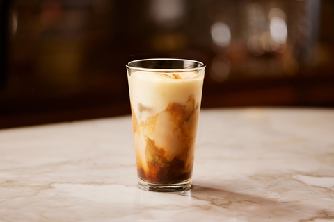 The inviting aroma of lush Partanna® extra virgin olive oil infused cold foam cascades slowly through the dark, smooth cold brew, creating a subtle sweetness in the beverage.